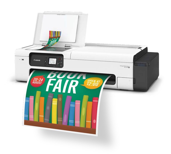 Consigue impresiones profesionales con la imagePROGRAF TC-20 de Canon, una impresora de sobremesa de 24" fácil de usar para oficinas, tiendas, centros educativos o incluso para trabajar desde casa.